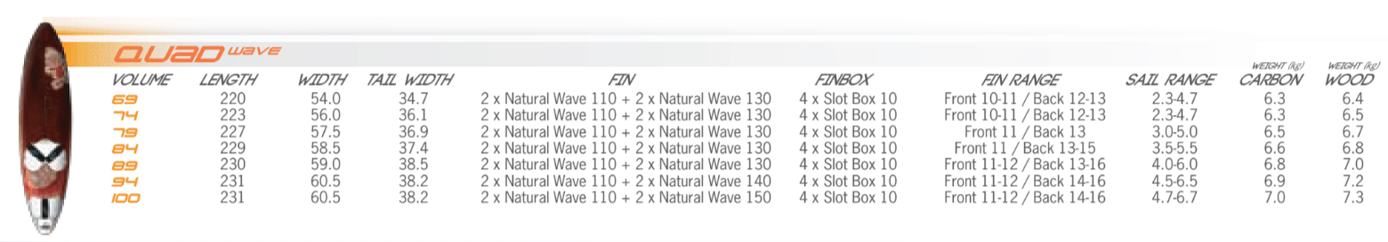The Quads are Starboard’s most versatile wave boards. The unique shape and the four fins generate maximum drive and acceleration, bringing an awesome production of speed, flow and power to your sailing in all wave & wind combinations. Stable and extremely responsive, the Quads are most rewarding when driven off the rails for powerful yet smooth turns. The four-fin grip gives a very connected sensation to the wave yet they still have the ability to lose the tail when extended through the lip for a rotational move.