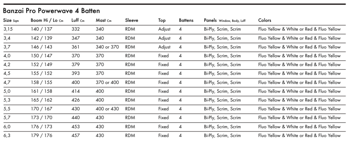 The Banzai Pro is simple to rig, yet highly tunable to rider style and preference. Its Poly Clew out-haul system, offering a high and a low boom attachment ring, in particular expands the wind range of this bestseller even more. The Banzai Pro is the answer and solution to all demands of a light weight, direct power delivery, wide range sail with heaps of flex feel and control. Its adaptability is unparalleled.
