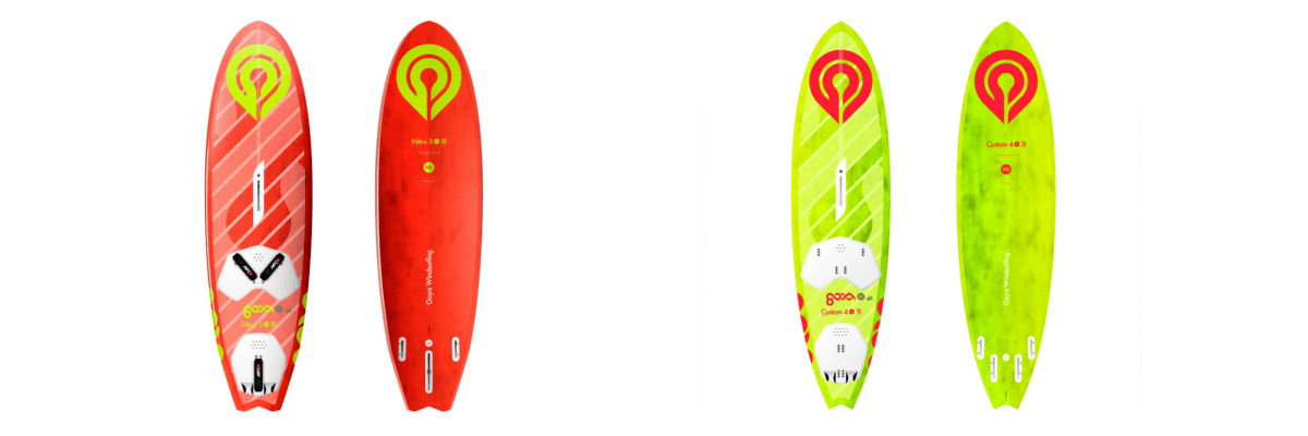 New for 2022 we have the Goya Nitro which has been designed as an onshore wave board by Marcilio Brown and a board he used in PWA events. We so often turn up the beach and the conditions aren’t exactly what we expected them to be, we sit around, drink tea and complain to other windsurfers doing the same thing. Will the waves get form? Will the wind direction change? The Nitro is the board that thrives in these not so perfect conditions, Goya have managed to achieve this by designing the board to be super compact with a faster, earlier planning hull shape than all the other Goya wave boards. Marcilio talks of days where he would be hardly planning on a 5.3 in mushy waist high waves having the time of his life, laughing at the guys on the beach.