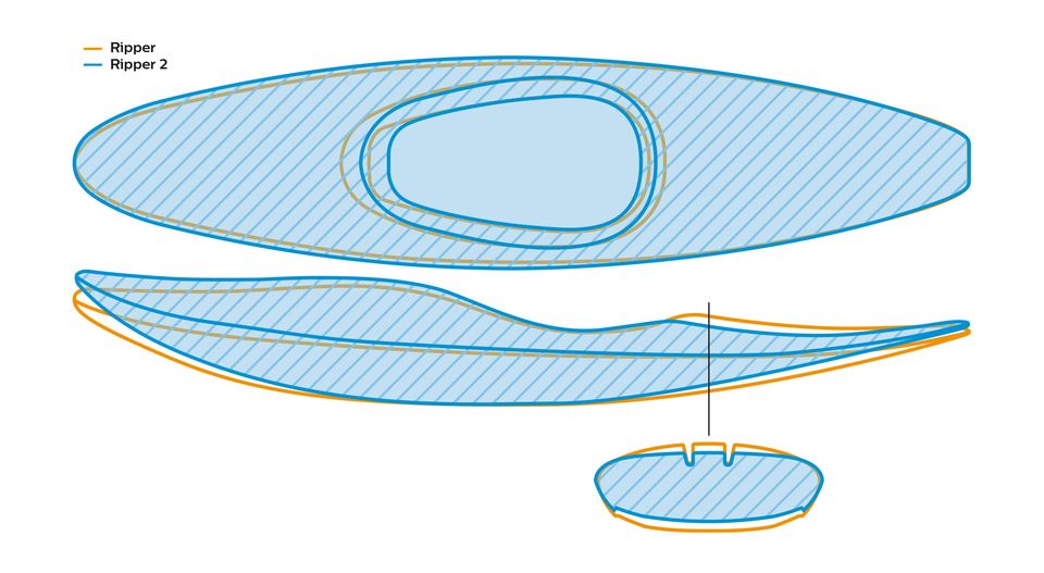 Each paddler will have a different interpretation of difficulty and thus I wanted to address this topic generally. Reducing the stern volume and increasing the rocker would generally hinder the potential to run top end grades. Andy and the team were keen not to adversely affect the Ripper's reputation as the ultimate one boat quiver and have carefully approached the challenge. The second generation remains a boat that likes to be paddled proactively but there are many positives of the new design from a river running perspective. Firstly, the rocker profile makes it simpler to raise the nose over larger holes, doing so without buying the tail and thus protecting you from ending up vertical. In addition, the increased ease of line adjustment should make it more possible for paddlers to correct direction mid rapid.