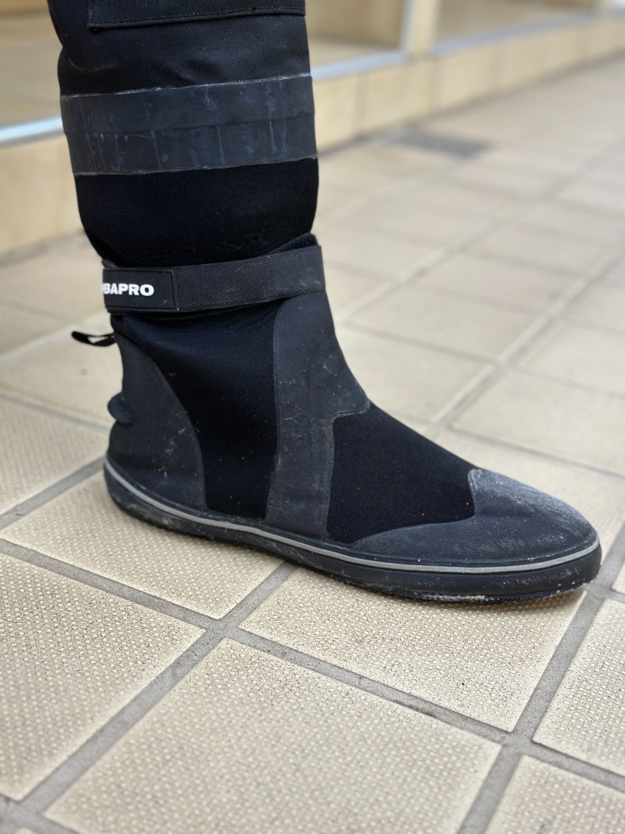 I was blown away by how comfortable this suit is. Considering it's an off the shelf drysuit with a size chosen solely based on their size chart, it fits incredibly well! The suit's cut makes it a breeze to put on and once properly fastened, it offers an exceptionally comfortable wearing experience. The boots that come with it are hands down the best drysuit boots I've ever encountered. Their slim-line design allows me to use the same fins whether I'm wearing a wet suit boot or a dry suit boot. The Velcro ankle straps are a simple yet effective solution for preventing any annoying air from travelling into the boots.