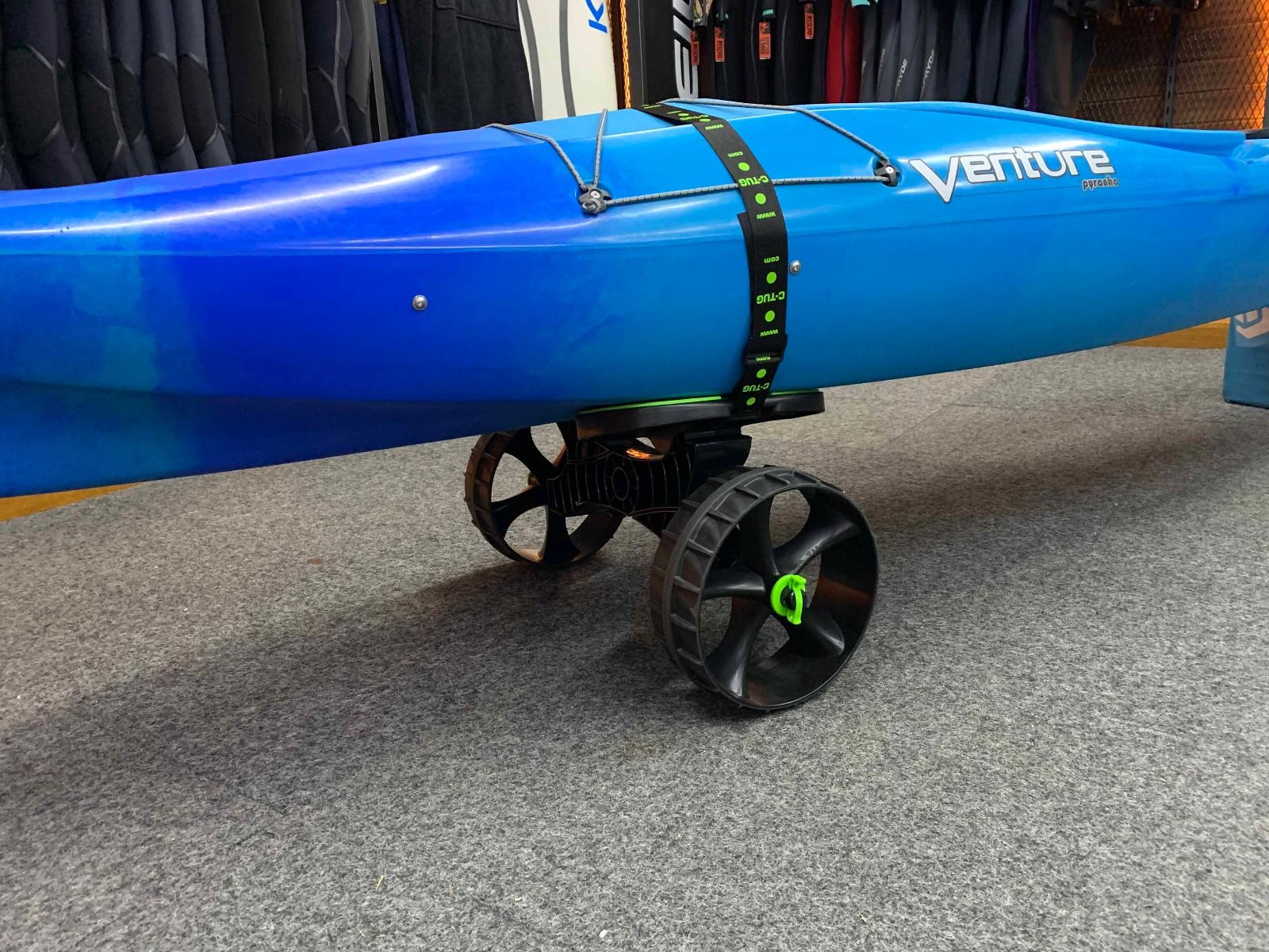 If you’re in the market for a kayak trolley the range of available brands can feel overwhelming. Which suits your requirement will largely come down to the boat, distance to travel and budget. One piece of good advice is to be wary of prices that seem too good to be true. Bargain tubular aluminium options often use thin wall material that bends easily. We recall one customer tell us his trolley had snapped, piercing the kayak!
