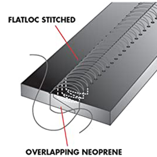 The simple and inexpensive choice. This type of seam is common on entry level suits and simply involves stitching through the neoprene fabric as you might with a home sewing machine. It maximises the flexibility but comes with one downside. The neoprene itself is a waterproof fabric and by applying a flatlock seam the manufacturer has essentially made lots of tiny holes that allow water in. This is not so much of an issue for summer thickness suits but in colder conditions perhaps best avoided. Although the theory of wetsuits is that they hold a layer of water, the reality is that the less cold water ingress the better!